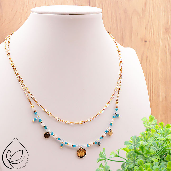 Collier Iris Gold mit Blauer Apatit, Aquamarin A