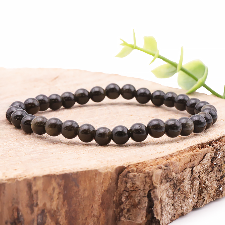 Kugelarmband 06mm schwarze Obsidian A