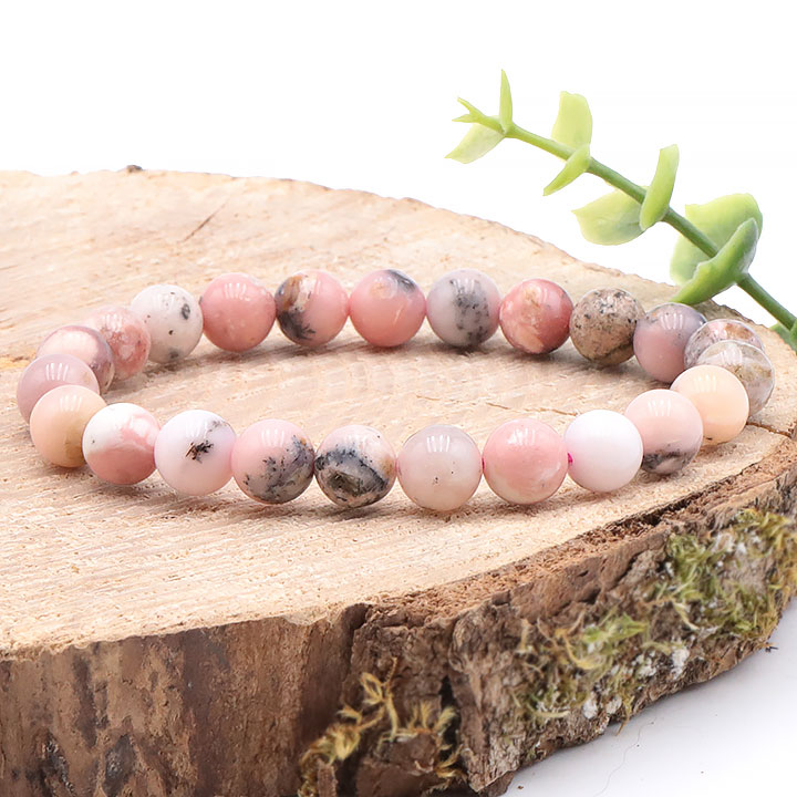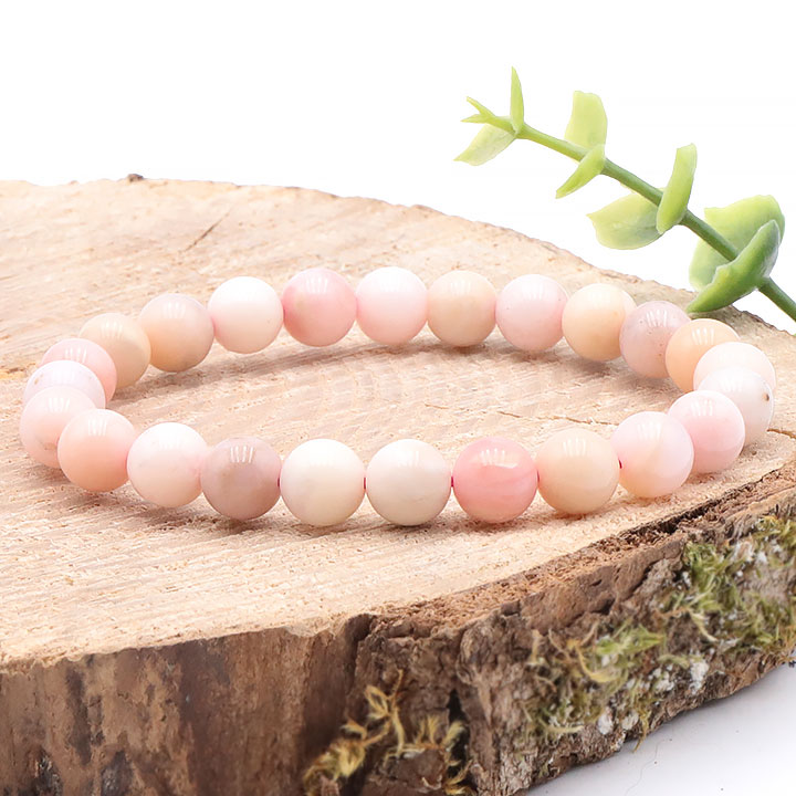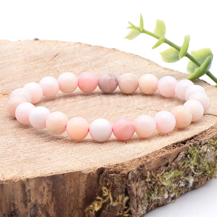 Kugelarmband 08mm rosa Opal + Chrysopras A+