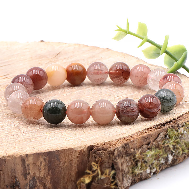 Kugelperlenarmband 10mm Multicolor Rutilquarz Kristall A