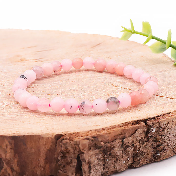 Kugelarmband 06mm Rosa Opal Erwärmt A