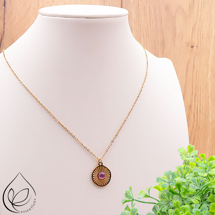 Collier Térélia versilbert Amethyst, Rosenquarz A