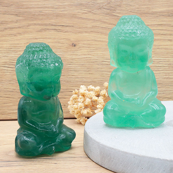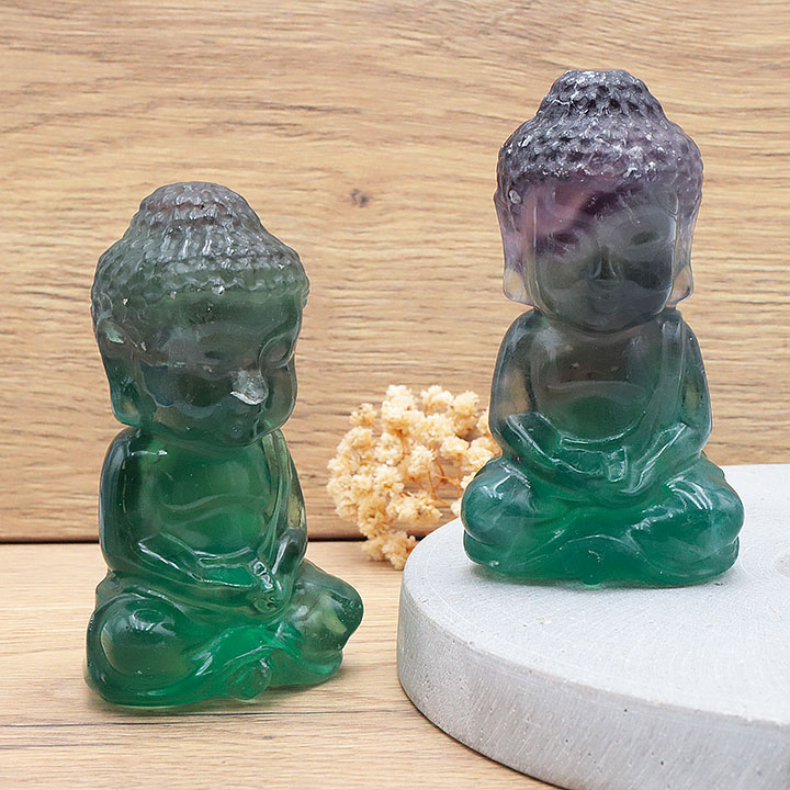 Indischer Buddha 100mm grüner Fluorit AA (1 set)