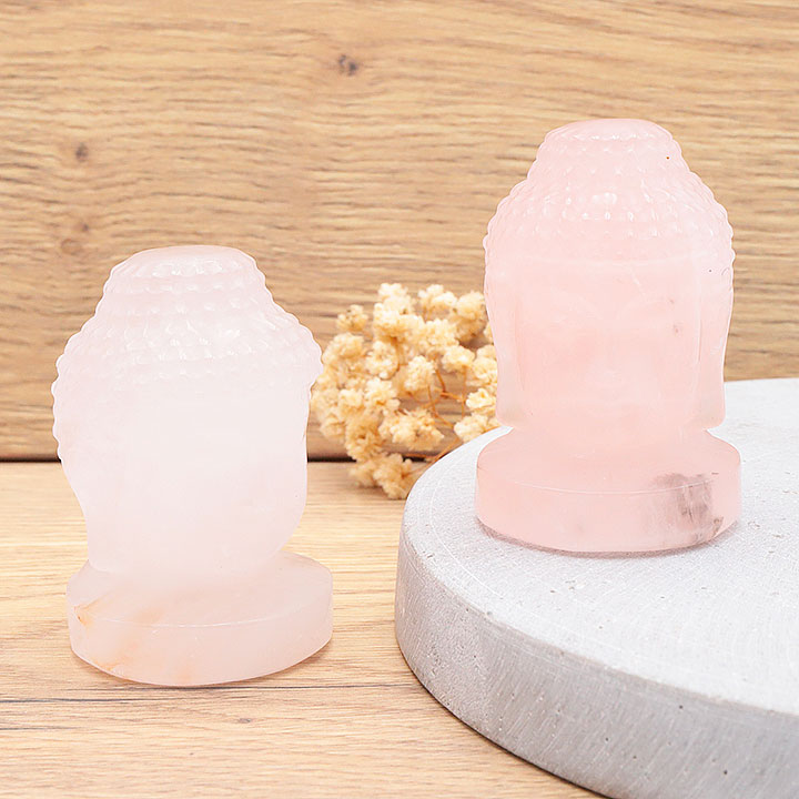 Indischer Buddha-Kopf 65mm Rosenquarz A (1 set)