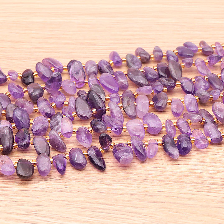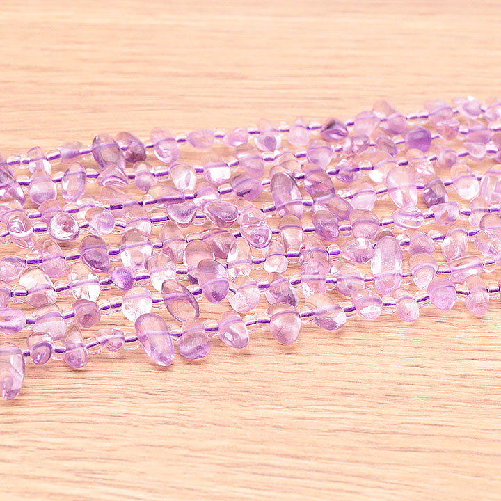 Perlenstrang mit gerollten Steinen 05 x 10mm heller Amethyst Brasilien AAA