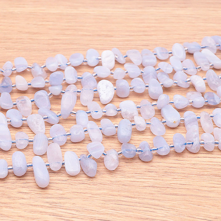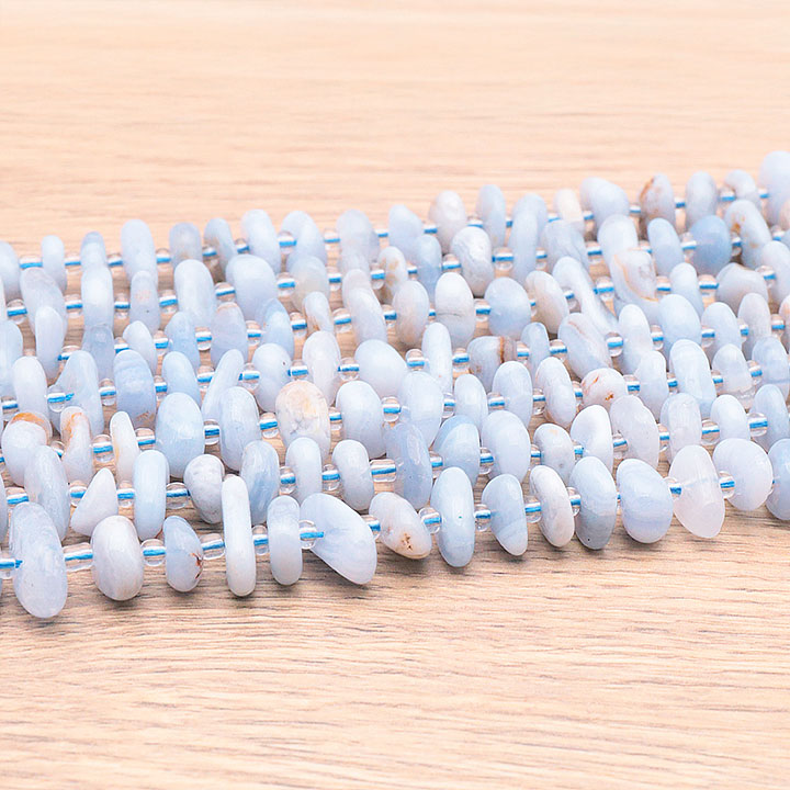 Faden aus Trommelsteinen 06 x 14mm blauer Chalcedon Namibia AA