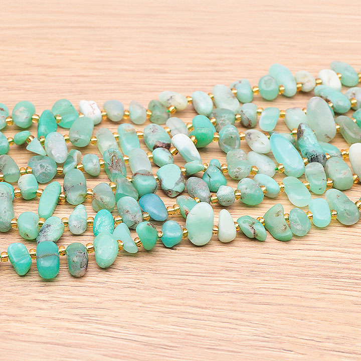 Kette aus Trommelsteinen 06 x 14mm Chrysopras AA