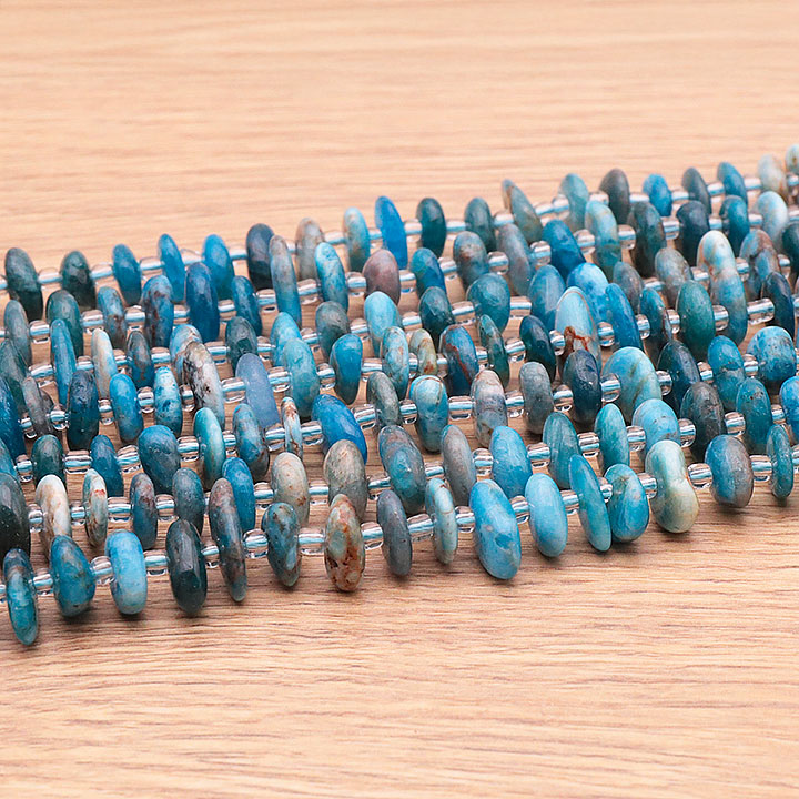 Perlenstrang aus getrommelten Steinen 04 x 10mm blauer Apatit A