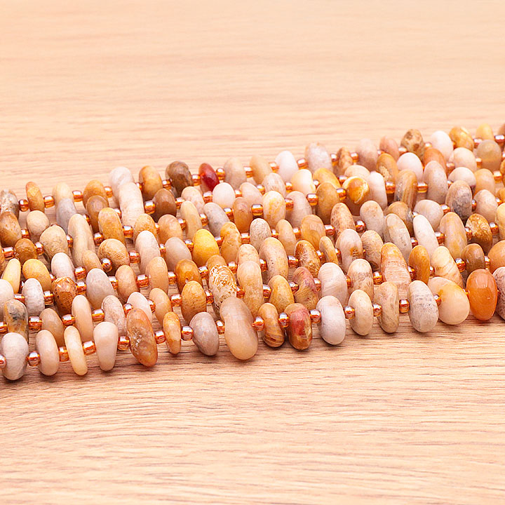 Perlenfaden aus gerollten Steinen 04 x 10mm fossiles Koralle A