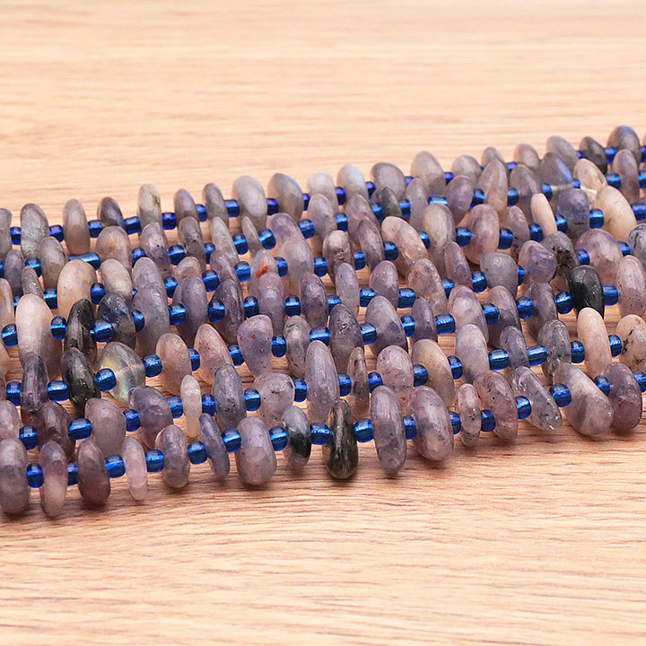 Faden aus Trommelsteinen Perlen 04 x 10mm Cordierit A