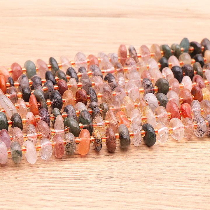 Perlenstrang aus getrommeltem Stein 04 x 10mm mehrfarbiger rutilierter Bergkristall AA