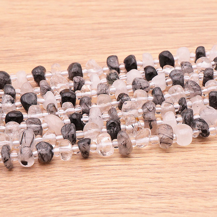 Perlenstrang, getrommelte Steine 04 x 10mm Bergkristall Turmalin AA