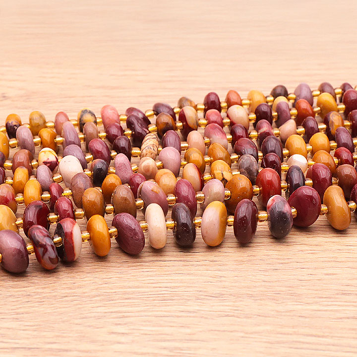 Perlenkette von getrommelten Steinen 04 x 10 mm Mookait-Jaspis AA