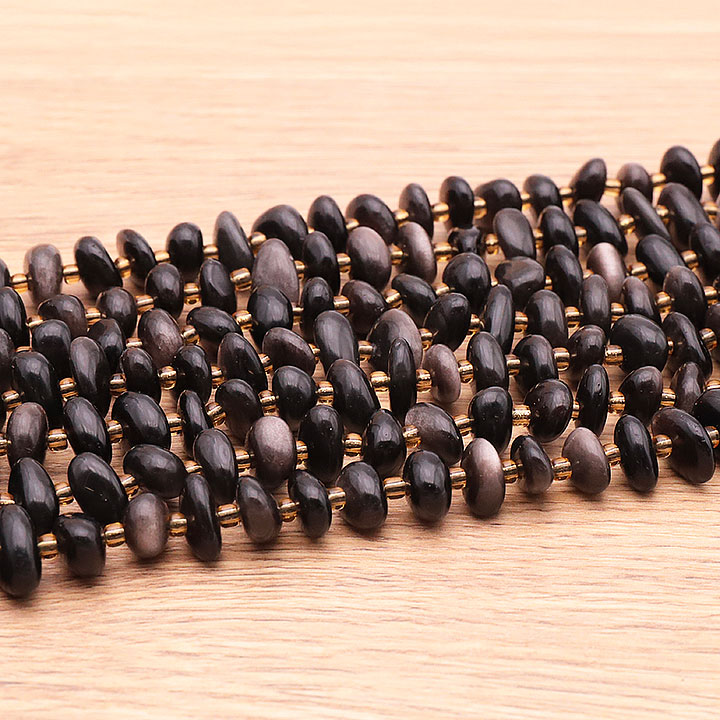 Perlenstrang aus trommelpolierten Steinen 04 x 10mm silber schimmernder Obsidian AA