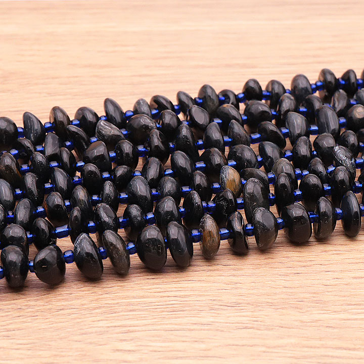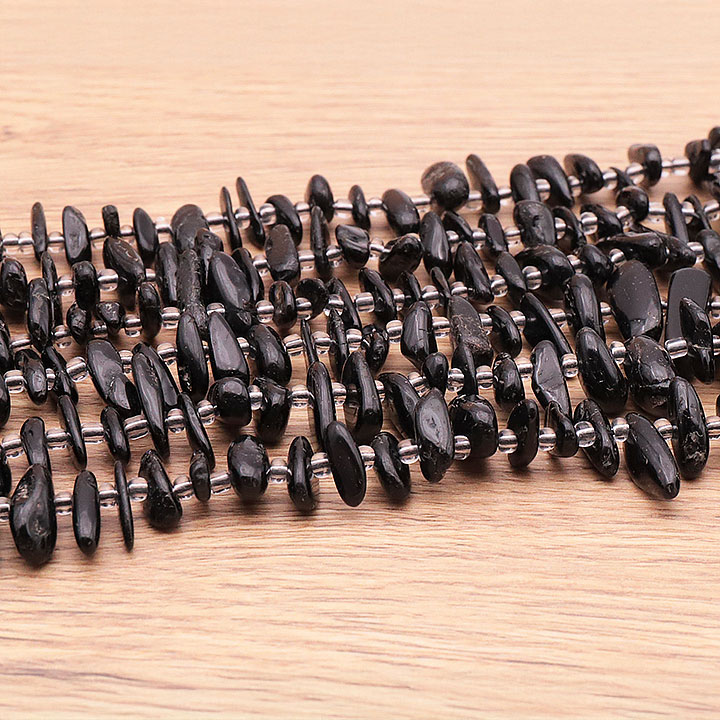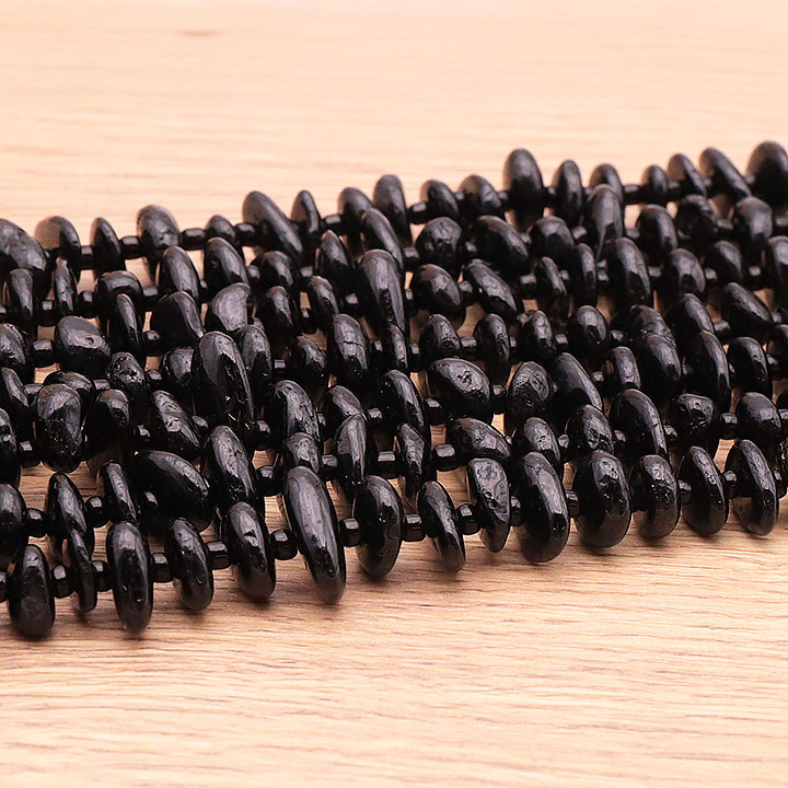Perlenstrang aus geschliffenen Steinen 04 x 10mm schwarzer Turmalin A