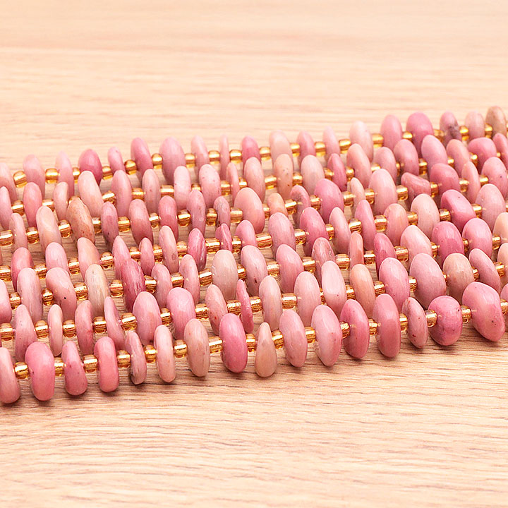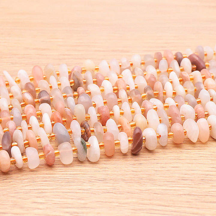 Strang mit getrommelten Steinperlen 04 x 10mm rosa Mondstein AA