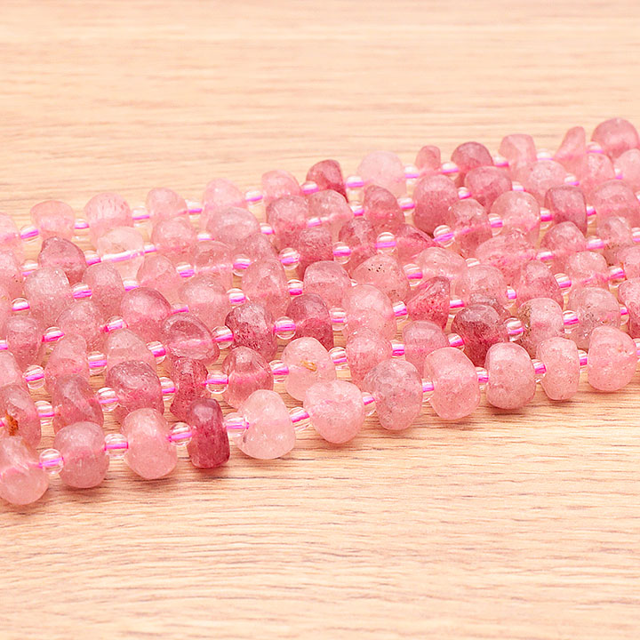 Perlenstrang gewalzte Steine 04 x 10mm Erdbeerquarz (Hämatit) AA