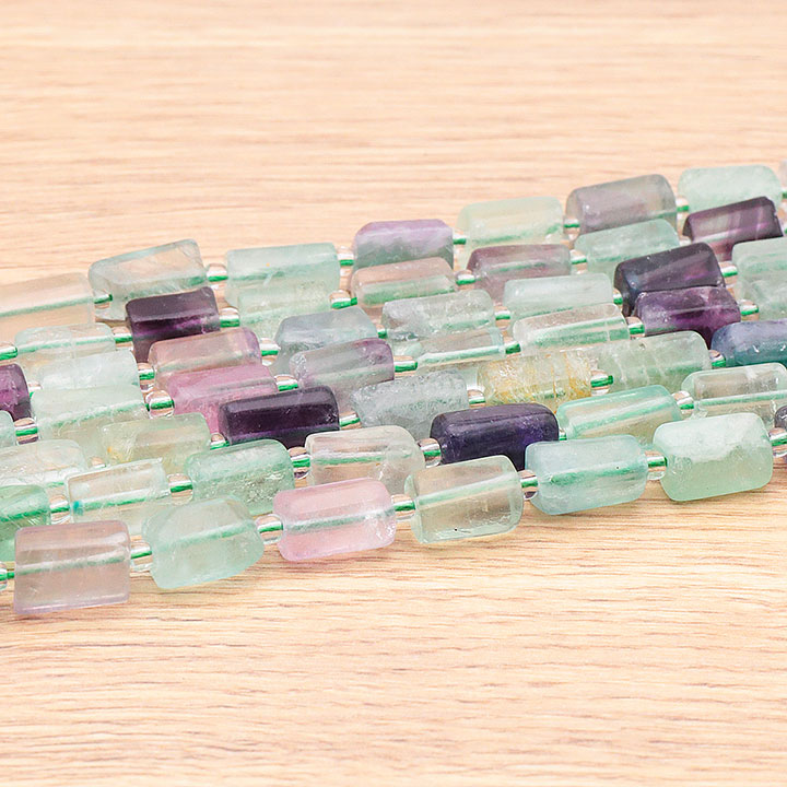Strang aus multicolor Flussspat-Röhrenperlen 08 x 12mm A