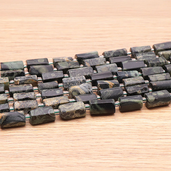 Faden aus 08 x 12mm Kambaba Jaspis Röhrenperlen A