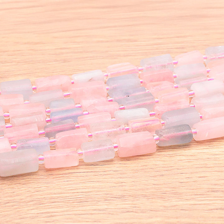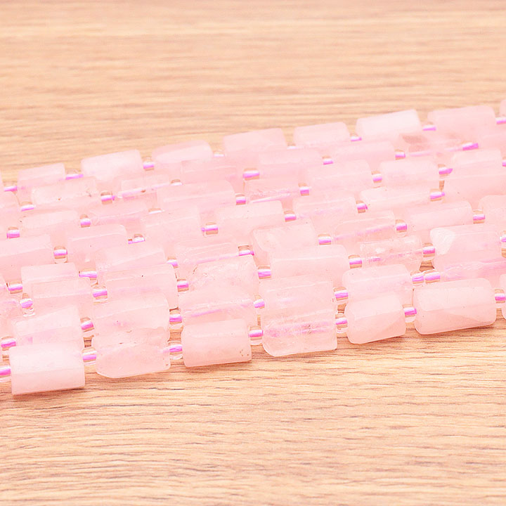 content:Perlenstrang Röhren 08 x 12mm Rosenquarz Südafrika AA