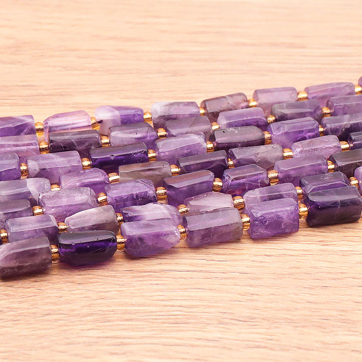 Perlenstrang Röhren 08 x 12mm gestreifter Amethyst Brasilien AA