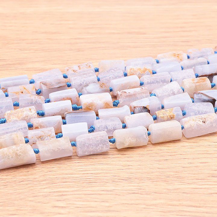 Perlenstrang Röhren 08 x 12mm blauer Chalzedon Namibia A