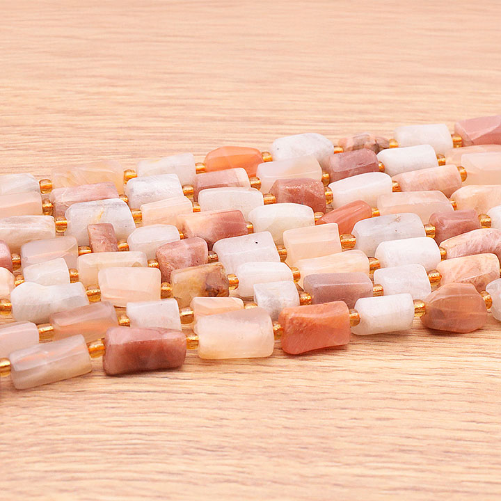 Perlenstrang Röhren 08 x 12mm mehrfarbiger Mondstein A