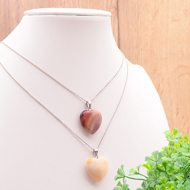 Armbänder und Anhänger aus mokaitanischem Jaspis. Steine Donuts und Rollsteine aus Mokait-Jaspis.