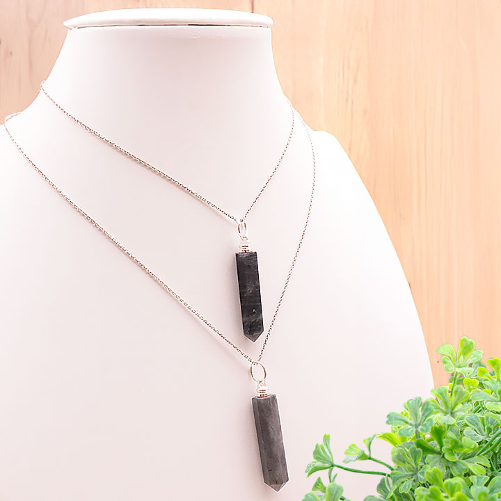 Tropfenanhänger lange Kette Labradorit A (set 2 Stücke)