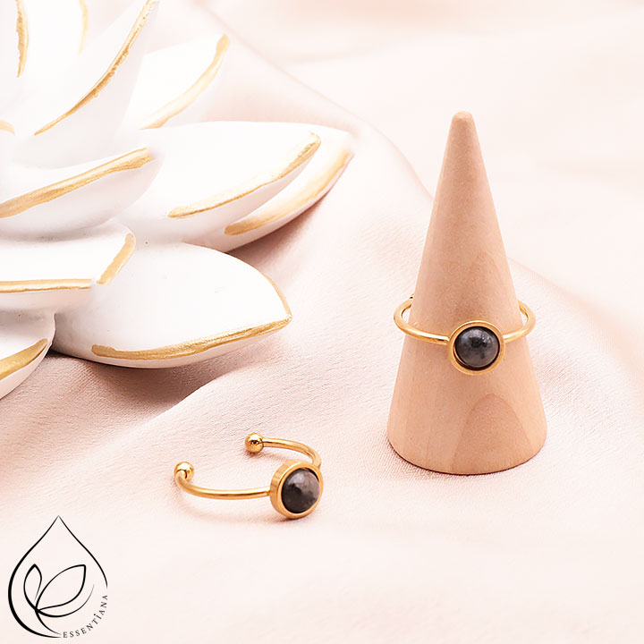 Larvikit-Armbänder. Larvikit-Kiesel und Donut-Steine für Anhänger