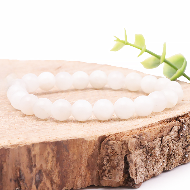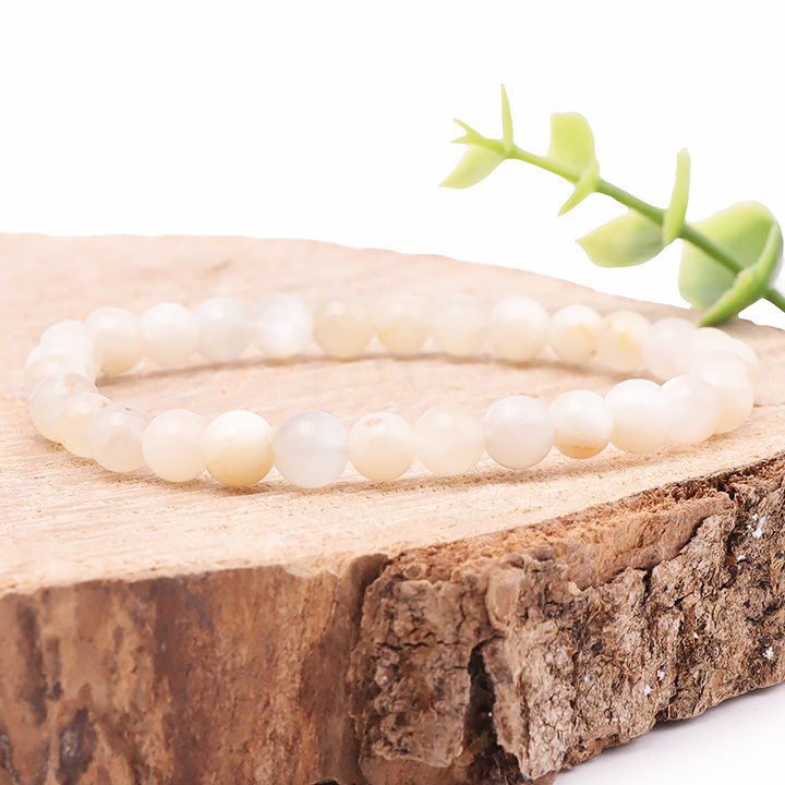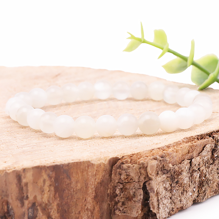 Armbänder und Anhänger aus beigem Mondstein. Facettierte Mondsteinperlen.