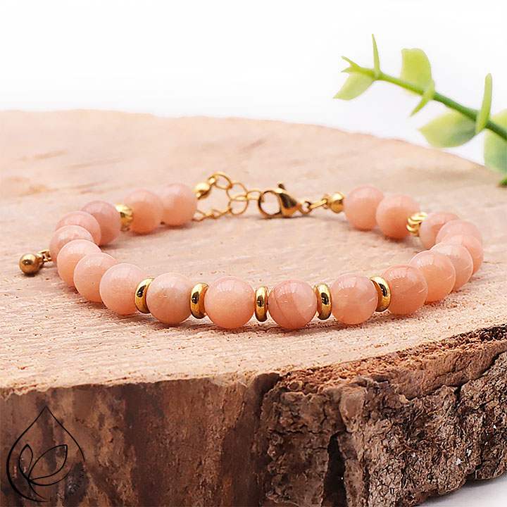 Armbänder aus rosa Mondstein. Trommelsteine und rosa Mondsteinperlen.