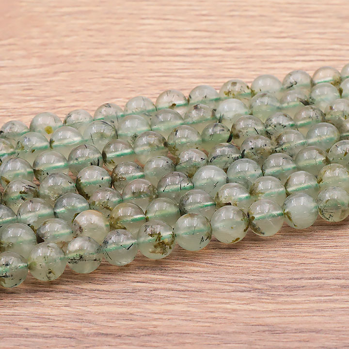 Armbänder und Anhänger aus natürlichem Prehnit-Stein. Trommelsteine aus Prehnit.