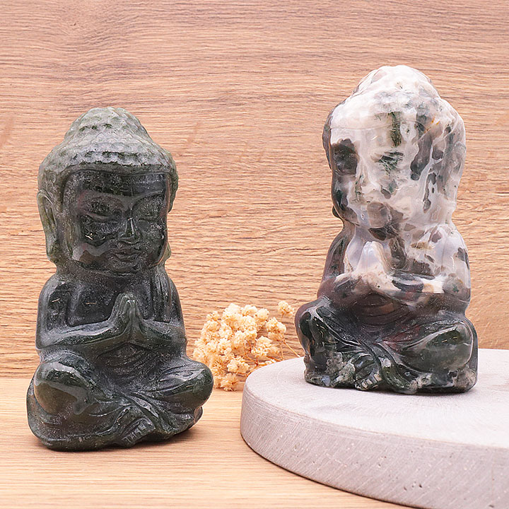 Indischer Buddha 120mm Moosachat AA (1 Stück)