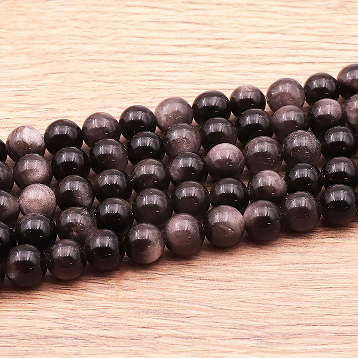 Silberglanz Obsidian Set 10mm Perlen AA