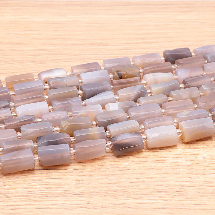 Strang aus Röhrenperlen 08 x 14mm grauer Botswana-Achat AA