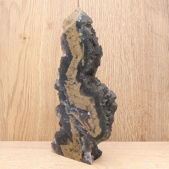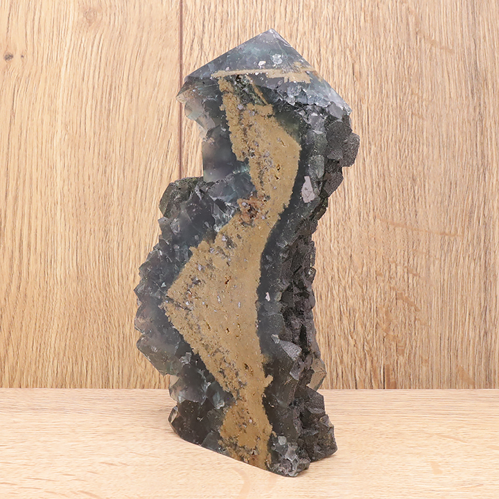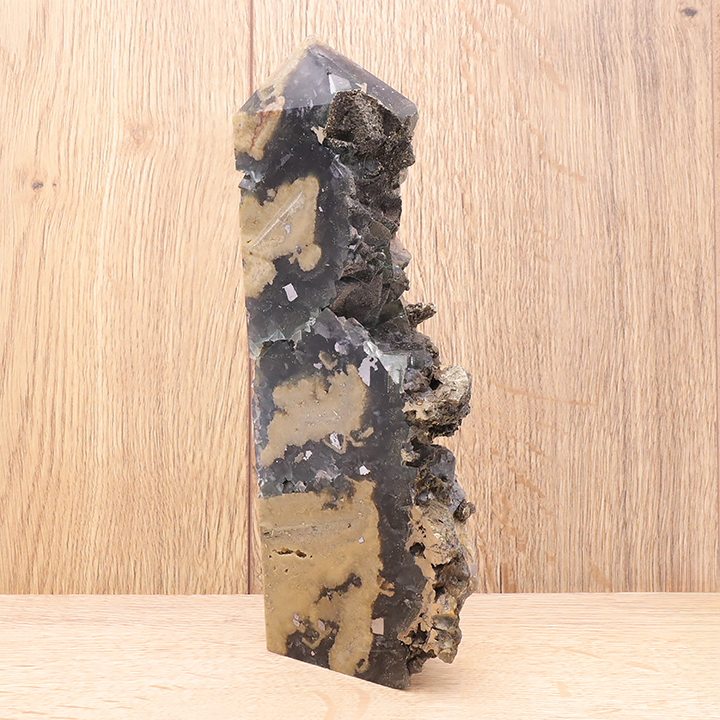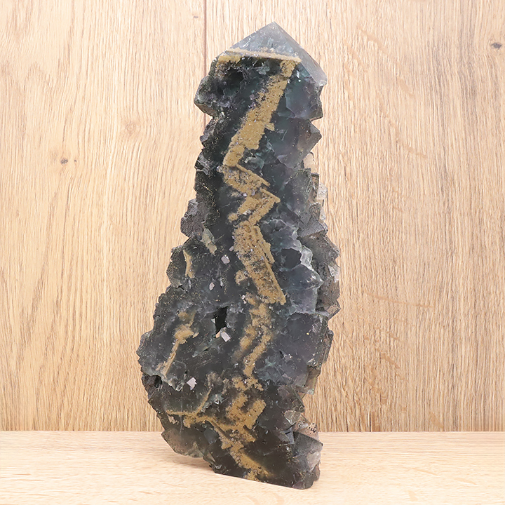 Polierte Spitze Nr.0673 Fluorit auf Pyrit AA 1235g (1 Stück)