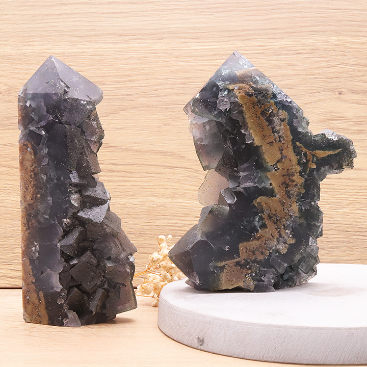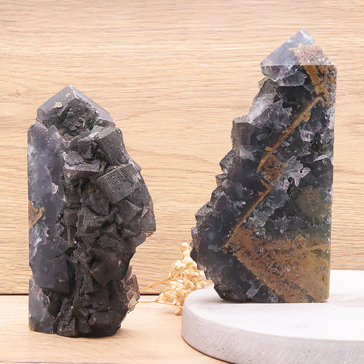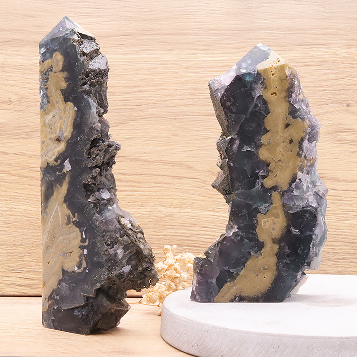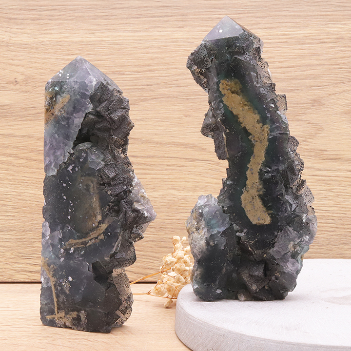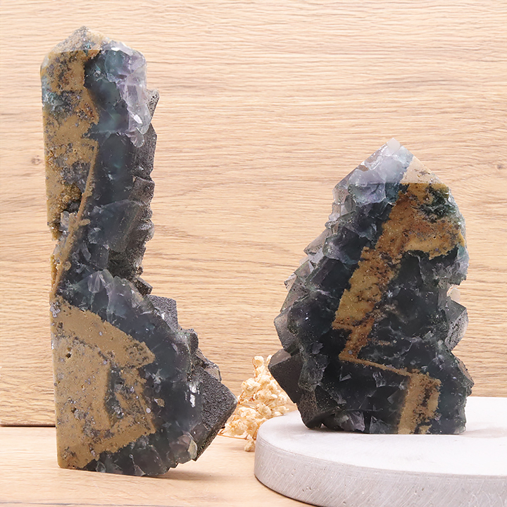 Halbpolierte Fluoritspitze auf Pyrit AA 550 bis 620g (1 set)