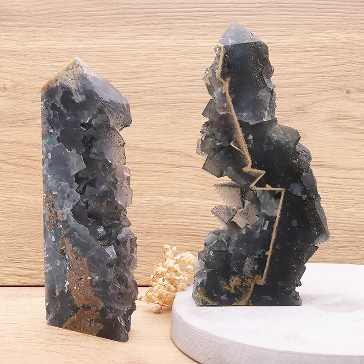 Dunkelgrünes Fluorit-Kristallset 90mm AA (1 Stück)