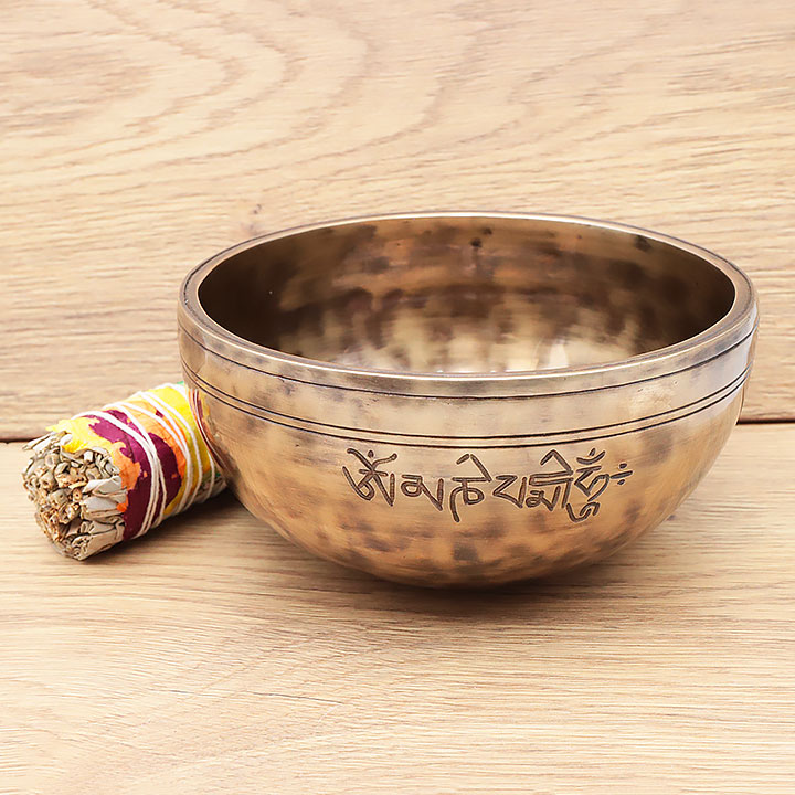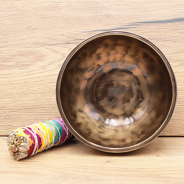 *Klangschale handgefertigt mit einer hochwertigen Legierung für tiefe und lang anhaltende Resonanz. Besteht aus reinem 98 % Bronze (Kupfer 72% Zinn 26%); ergänzt durch geringe Spuren traditioneller Metalllegierungen (Eisen, Zink, Aluminium...), um den Klang und die Notenhaltung zu verbessern.