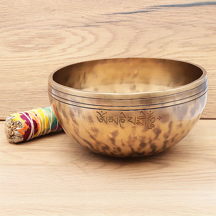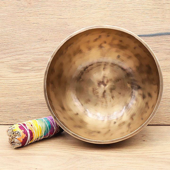 *Singing Bowl handgefertigt mit einer hochwertigen Legierung für einen tiefen und langanhaltenden Klang. Besteht aus 98% reinem Bronze (Kupfer 72% Zinn 26%); ergänzt durch geringe Spuren traditioneller Metalllegierungen (Eisen, Zink, Aluminium ...), um den Klang und die Notenstärke zu verbessern.