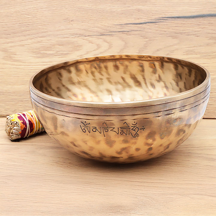 *Singing Bowl handgefertigt mit einer hochwertigen Legierung für eine tiefe und dauerhafte Resonanz.