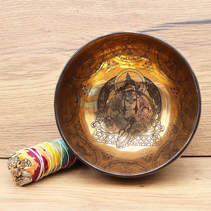 *Klangschale handgefertigt mit einer hochwertigen Legierung für eine tiefe und langlebige Resonanz. Besteht aus reinem Bronze 98 % (Kupfer 72% Zinn 26%); ergänzt durch geringe Spuren traditioneller Metalllegierungen (Eisen, Zink, Aluminium...), um den Klang und die Haltedauer des Tons zu verbessern.