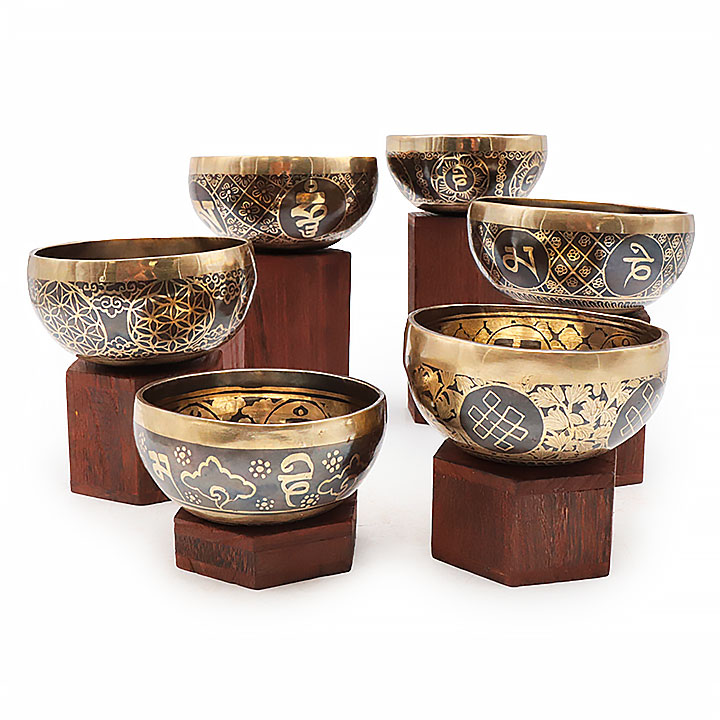 *Jedes Set ist handgefertigt, was es einzigartig macht. Leichte Abweichungen oder Unvollkommenheiten können auftreten und zeugen von seiner Authentizität. Das Innendekor, identisch für diese Referenz, folgt derselben Arbeitslinie. Außen ist jede Schale mit einem einzigartigen Dekor verziert, frei inspiriert von der Hand des Handwerkers. Das Muster kann nicht gewählt werden und wird zufällig versendet; dieses Überraschungselement ist eine gezielte Intention der nepalesischen Handwerker.
