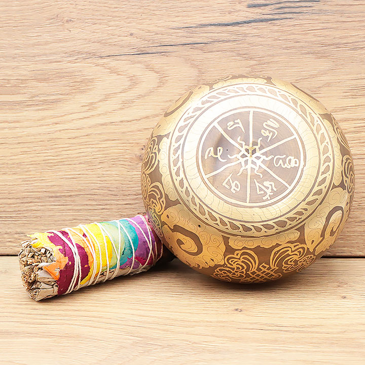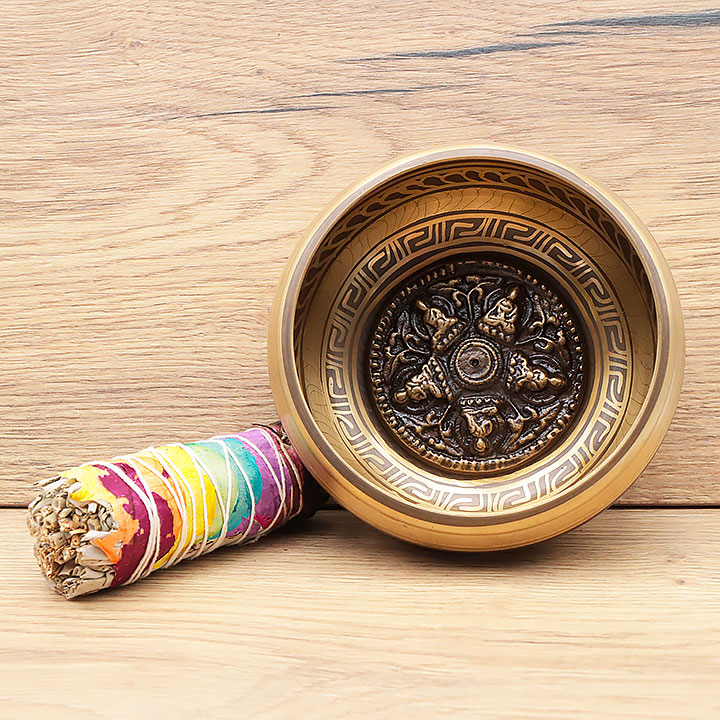 Klangschale, entworfen aus einer hochwertigen Legierung, die eine tiefe und anhaltende Resonanz bietet.