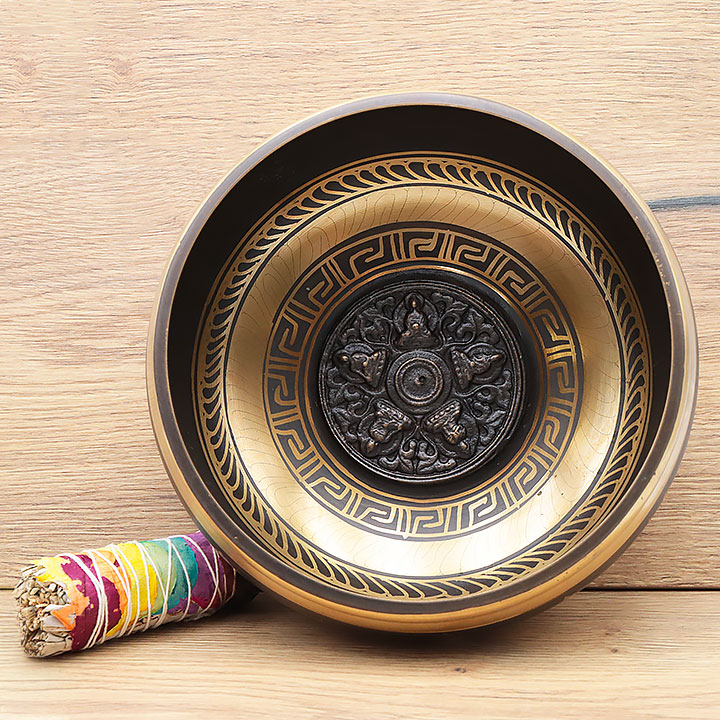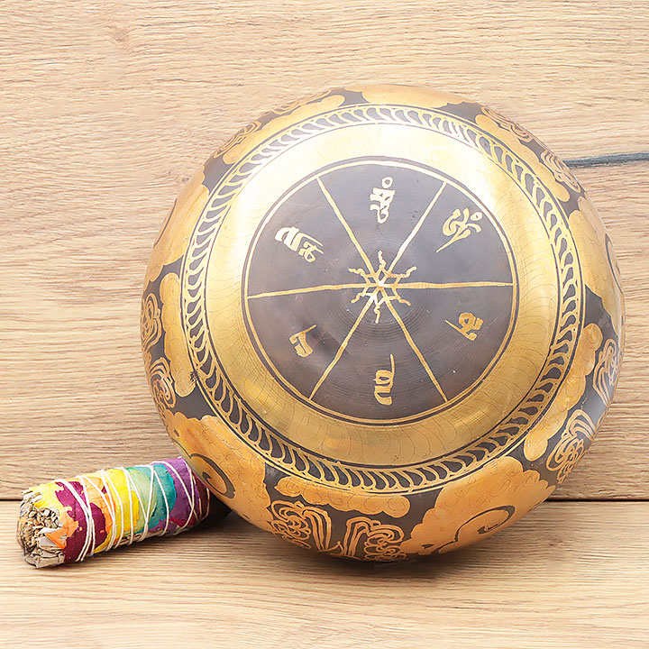 Klangschale aus einer hochwertigen Legierung, die eine tiefe und dauerhafte Resonanz bietet.