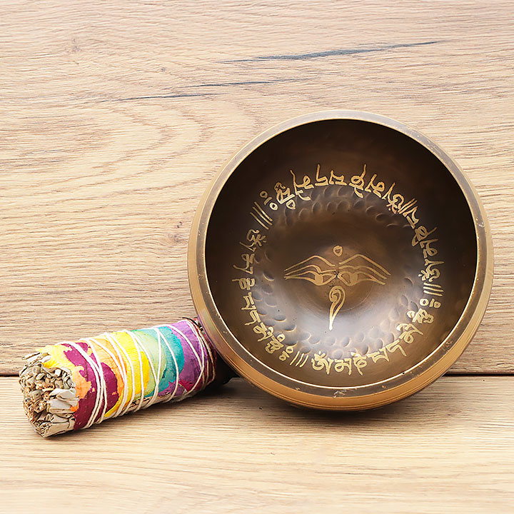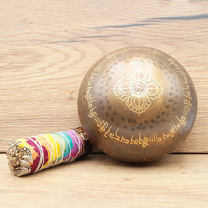 Klangschale entworfen aus einer hochwertigen Legierung, die eine tiefe und dauerhafte Resonanz bietet.