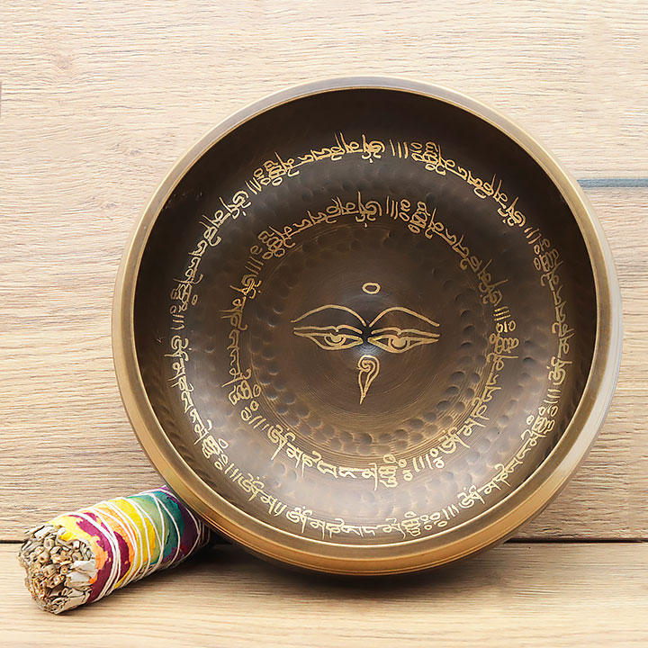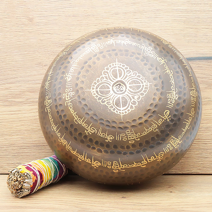 Klangschale aus einer hochwertigen Legierung gefertigt, die eine tiefe und langlebige Resonanz bietet.