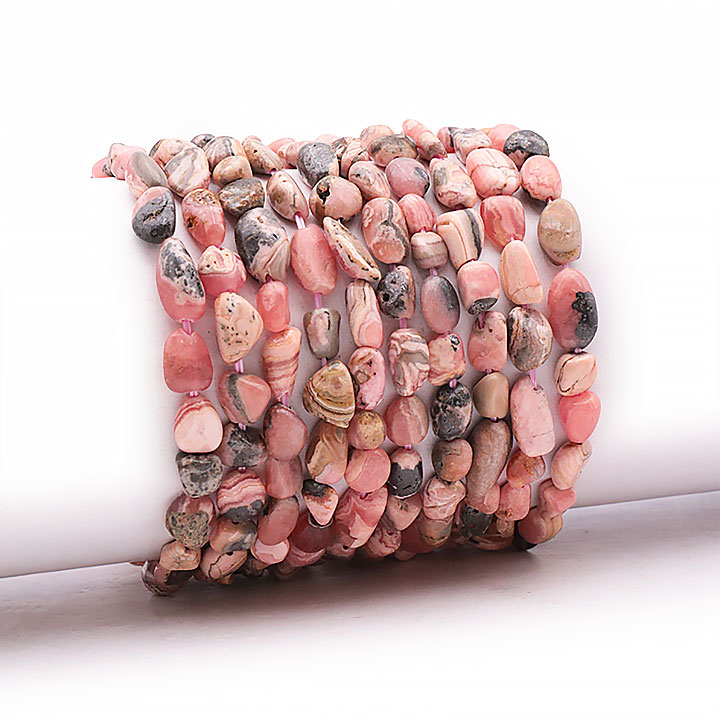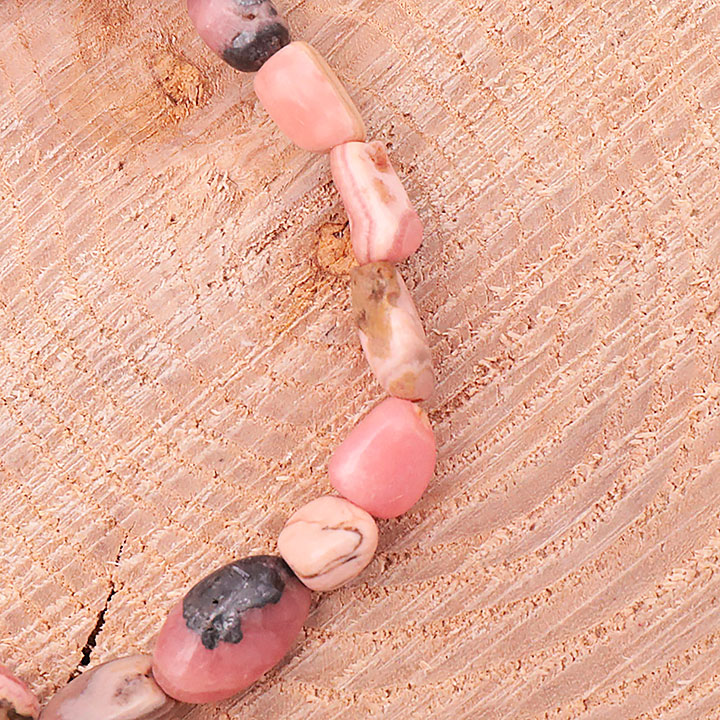 *Die Größe der Perlen kann um 1 bis 2 mm variieren **Der Rhodochrosit zeigt natürlicherweise Hohlräume und Unregelmäßigkeiten, die auf den Perlen zu finden sein können.