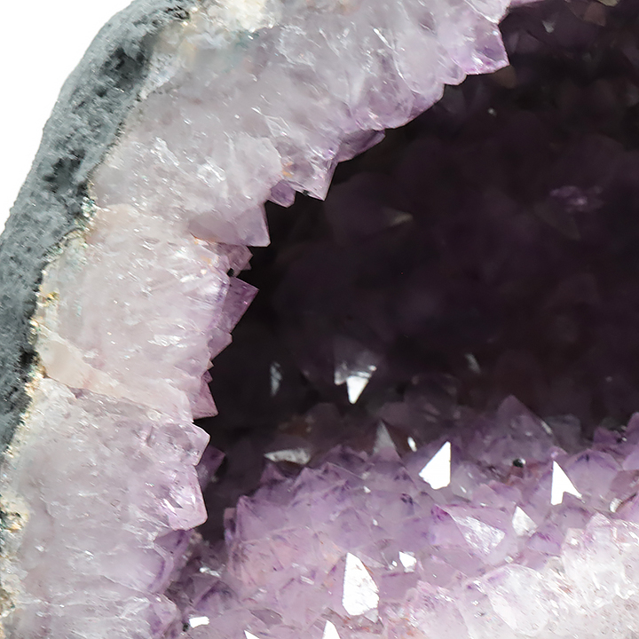 Typ: Nummerierte Stücke - Amethyst-Kathedrale Geode Stein(e): Amethyst Farbe: Violett / Transparent Maße (in mm): 265*350 Gewicht: 18700g Qualität: A+ = Hoch Vertragsgemäßes Foto